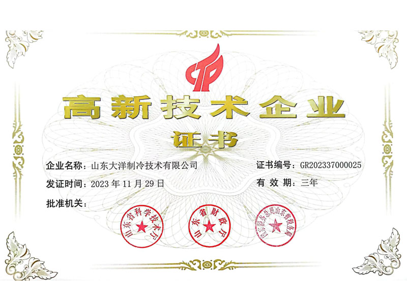 山東大洋制冷 · 資質證書